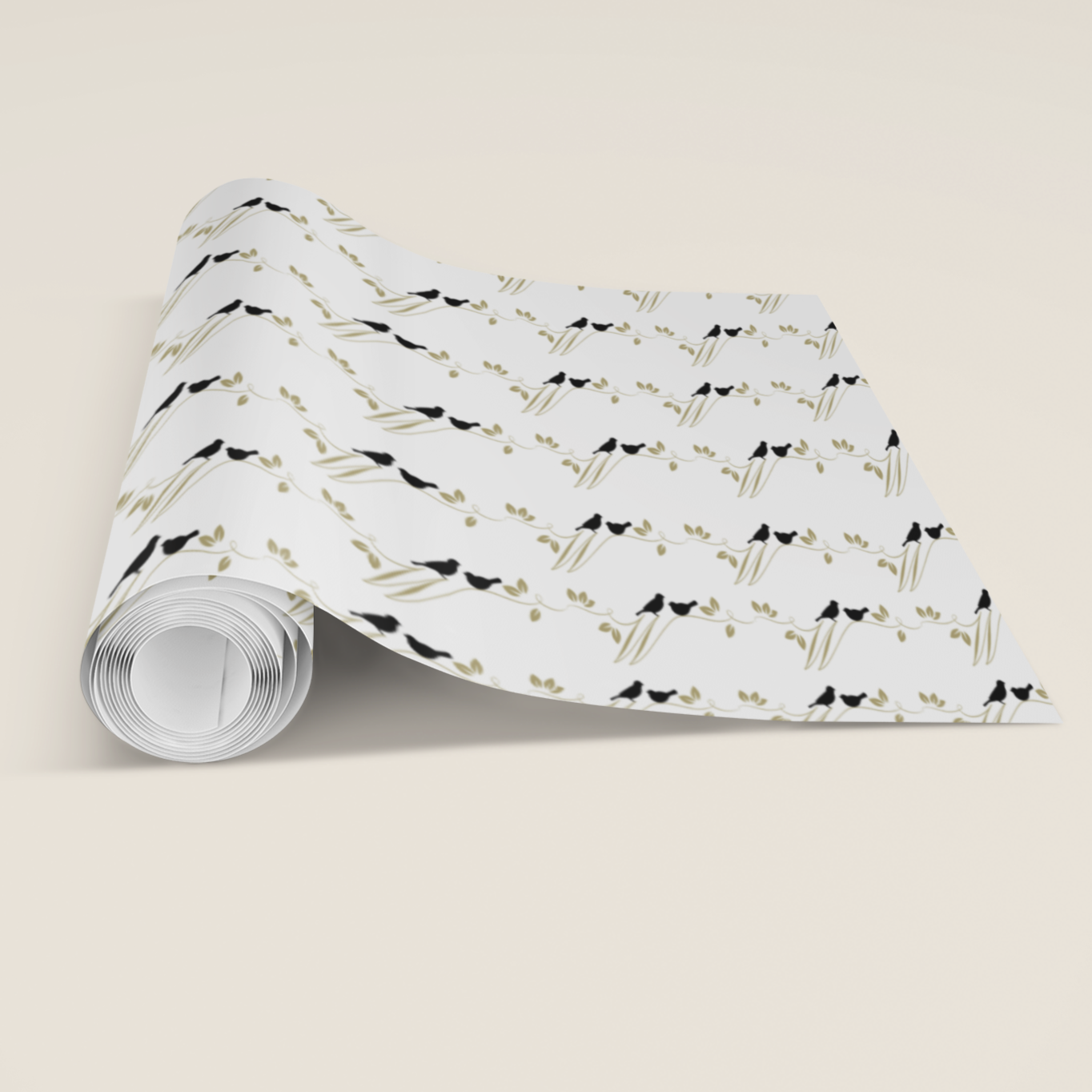 Designed for those who appreciate sophistication and quality, our Elegant Bird on Branch Gift Wrap features graceful olive green branches adorned with delicate black birds on a crisp white background.